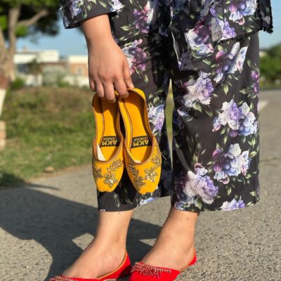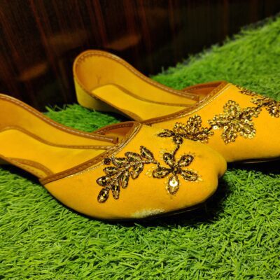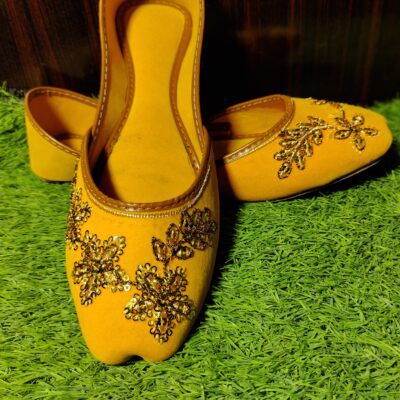 Embrace the warmth and radiance of our Golden Sunrise Embroidered Flats. These exquisite flats feature a deep golden yellow suede material, elegantly adorned with intricate, sparkling golden beadwork that forms floral and vine motifs. Each design element catches the light, creating a dazzling effect that complements any outfit. The flats are constructed with a comfortable flat heel and a soft padded interior, making them perfect for day-long wear at special events or for a luxurious touch to your everyday ensemble. Their classic slip-on design ensures both convenience and timeless style.