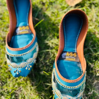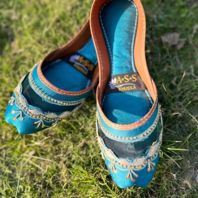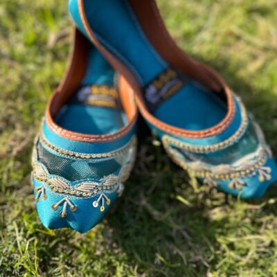 Embrace vibrant traditions with the Turquoise Traditional Embroidered Khussa: